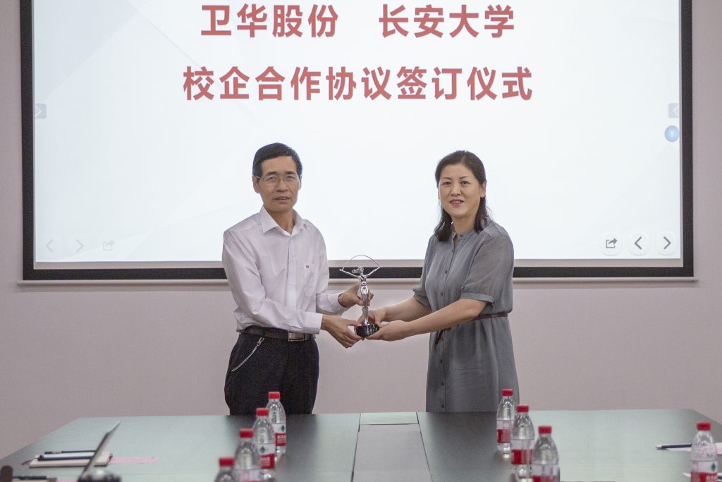 长安大学工程机械学院党委书记于丽娟将长安大学标志性建筑 “彩虹女神”的缩小版雕塑赠予好体育网页登录官网股份,这份珍贵的礼物也是好体育网页登录官网股份与长安大学友谊的见证。
