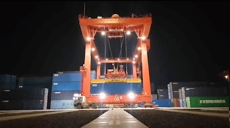 2.该智能化堆场项目每台远控自动化轨道集装箱门式起重机设计包含多达24个高清摄像头的视频系统,对大车运行轨道、集装箱、集卡、车道、箱区等部位进行实时监控,使操作人员能够准确操控起重机。