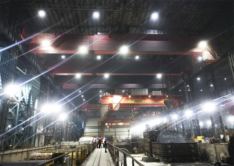 该项目创新性地提出双机构起升方案,完美契合客户厂房要求。其控制系统应用了信息远程监控技术、现场总线技术、光纤技术、同步控制技术,具有防倾斜、防钢丝绳松弛、自动增速、微速移动等功能。
